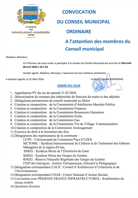 par Julien Cuny | Avr 1, 2026 | Actu à la une, Convocation CM, les conseils municipaux, Mairie